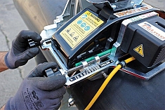 - Автоматическое орбитальное движение пилы управляется оператором на расстоянии благодаря джойстику: автоматическое вращение вокруг трубы управляется оператором на расстоянии с помощью джойстика