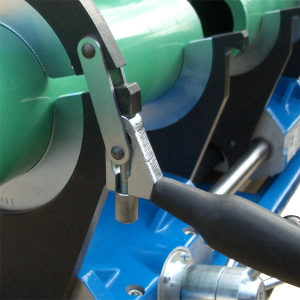 – Для фиксации положения зажимных хомутов во время нагрева используется ручка тормоза.