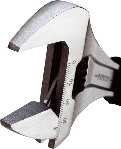 - Особо широкий зев позволяет заменить 3 типоразмера разводных ключей 8", 10", 12"