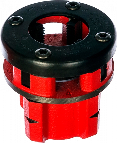 - Быстросменная резьбонарезная головка с надежным креплением для ручных резьбонарезных трубных клуппов Super Cut, электрических резьбонарезных трубных клуппов Supertronic 1250 и 2000