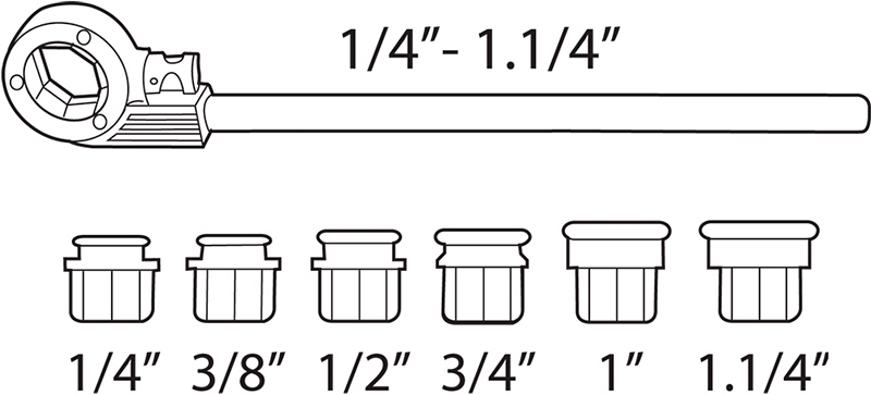 | 600000000 | Резьбонарезная трещотка | 1/4" – 1 1/4" | BSPT, NPT | R / L (Правая / Левая) |